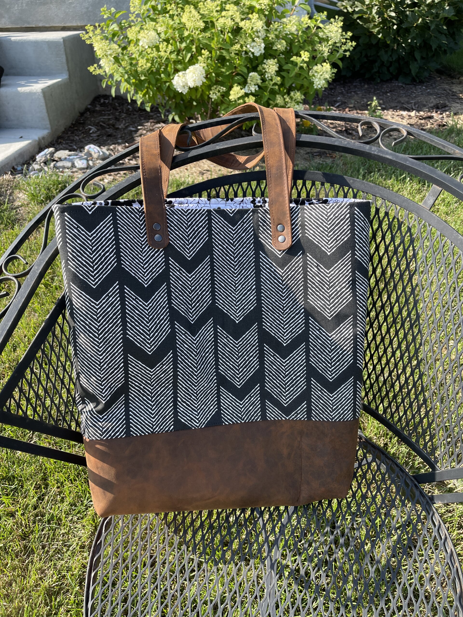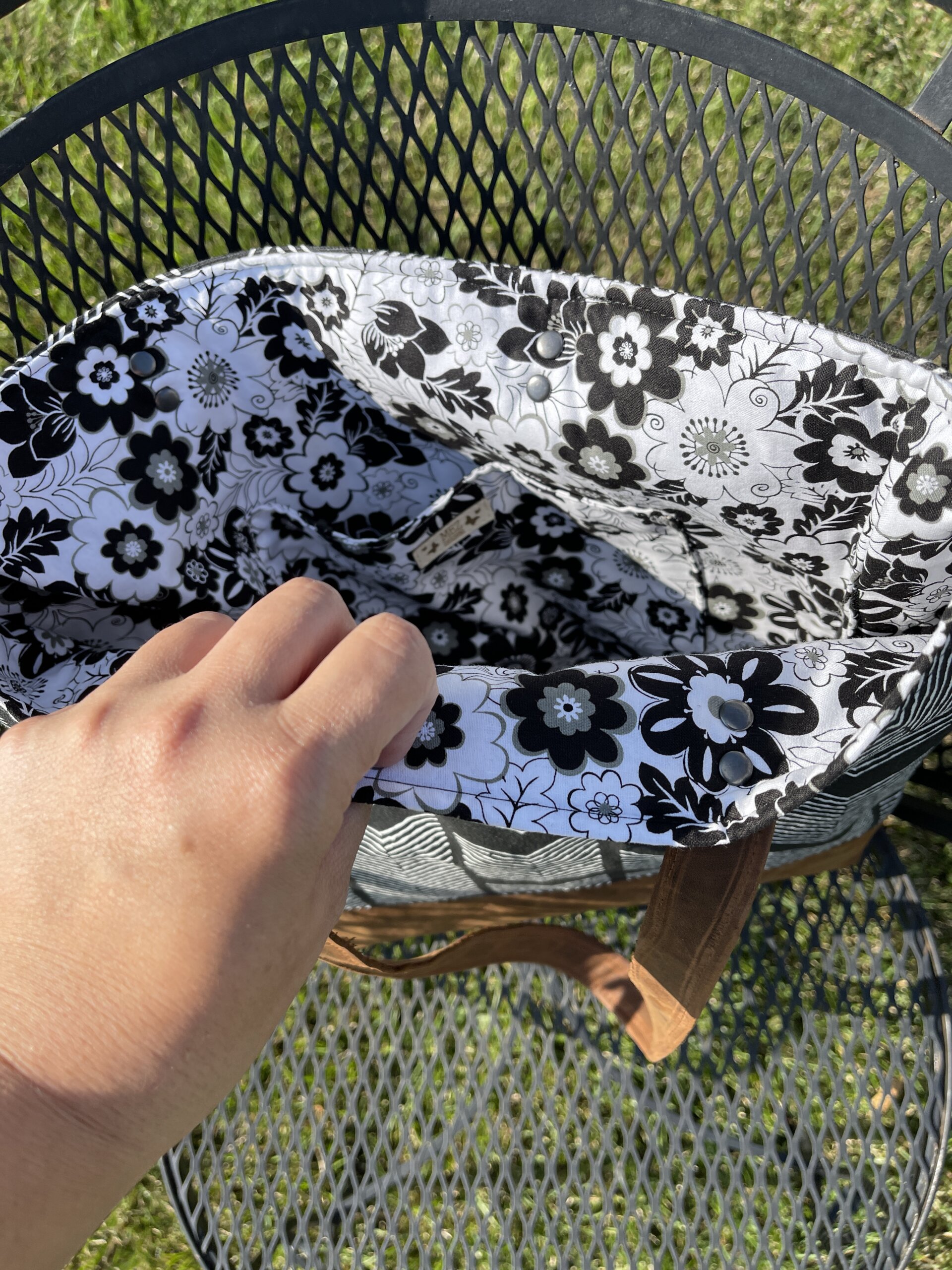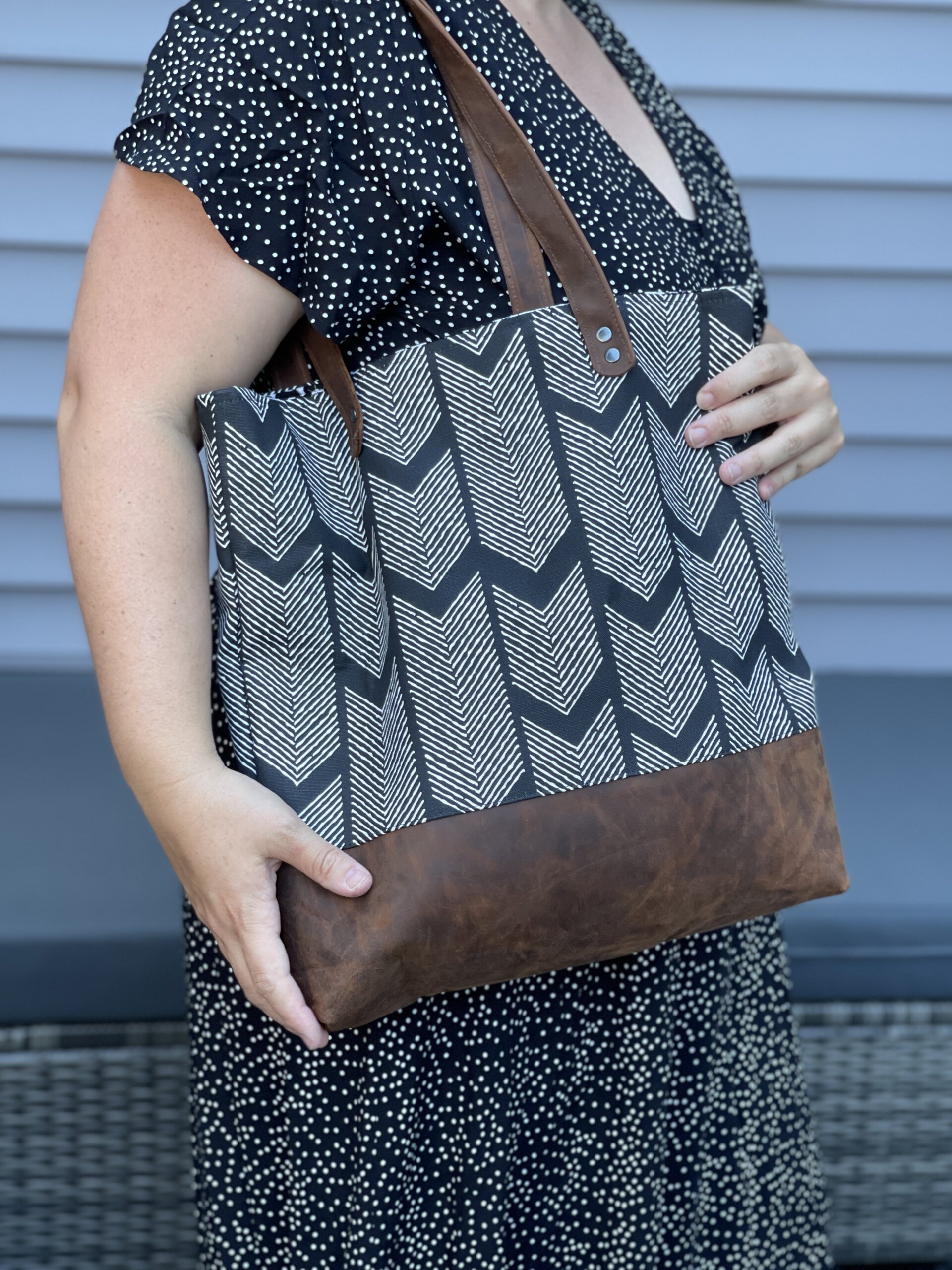 The approximate size of this tote is 15″ tall x 3″ deep x 14″ wide.