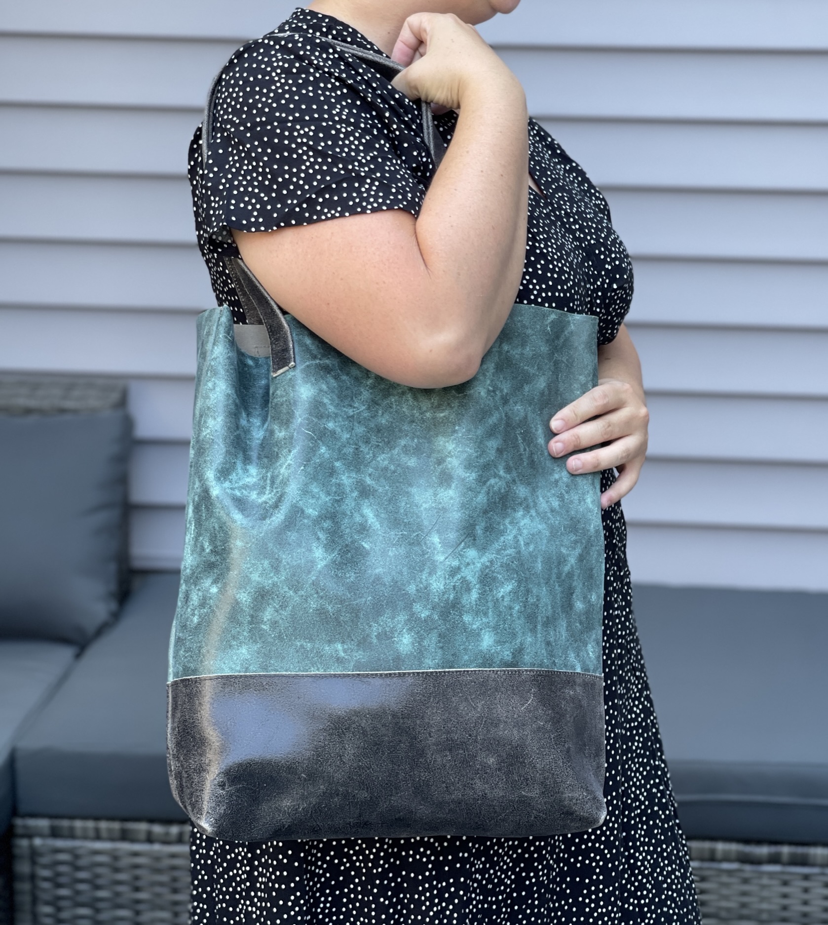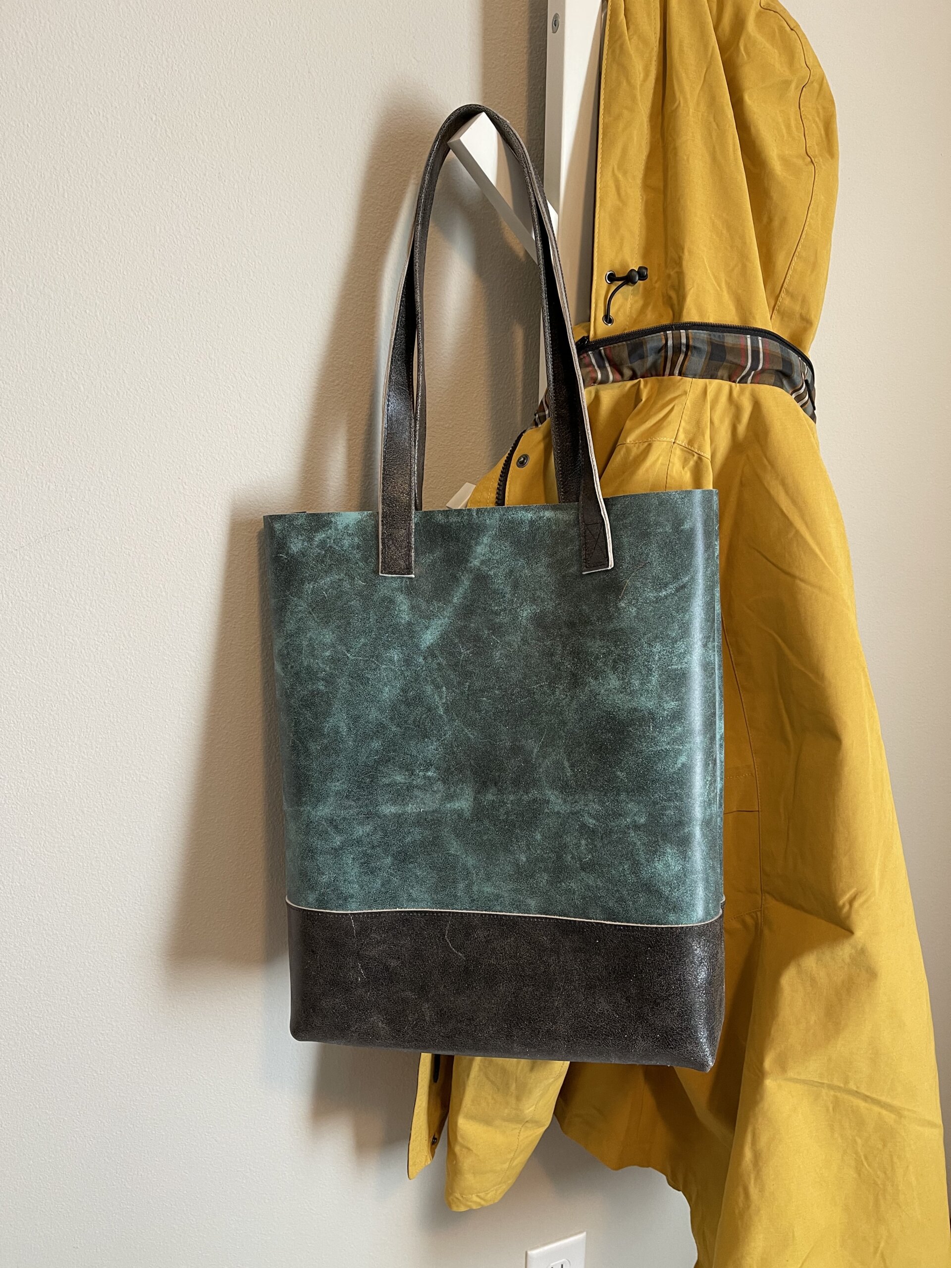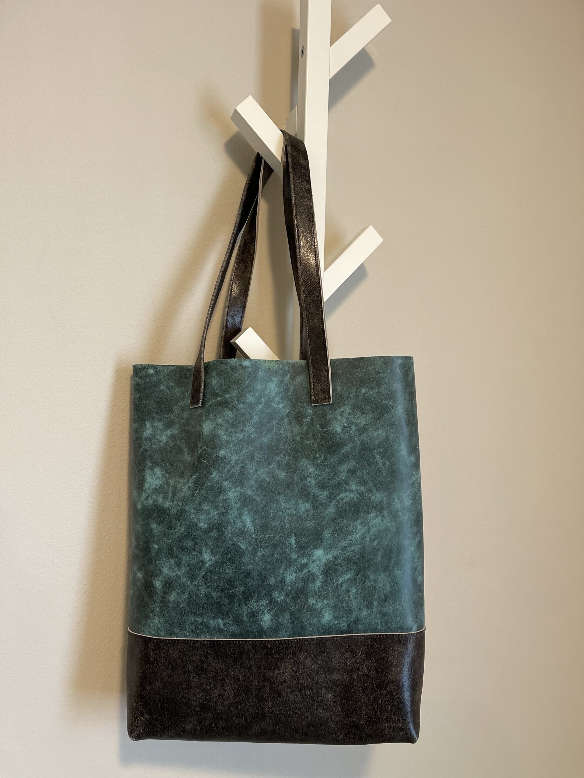 Tall Tote – Turquoise with Charcoal All Leather
