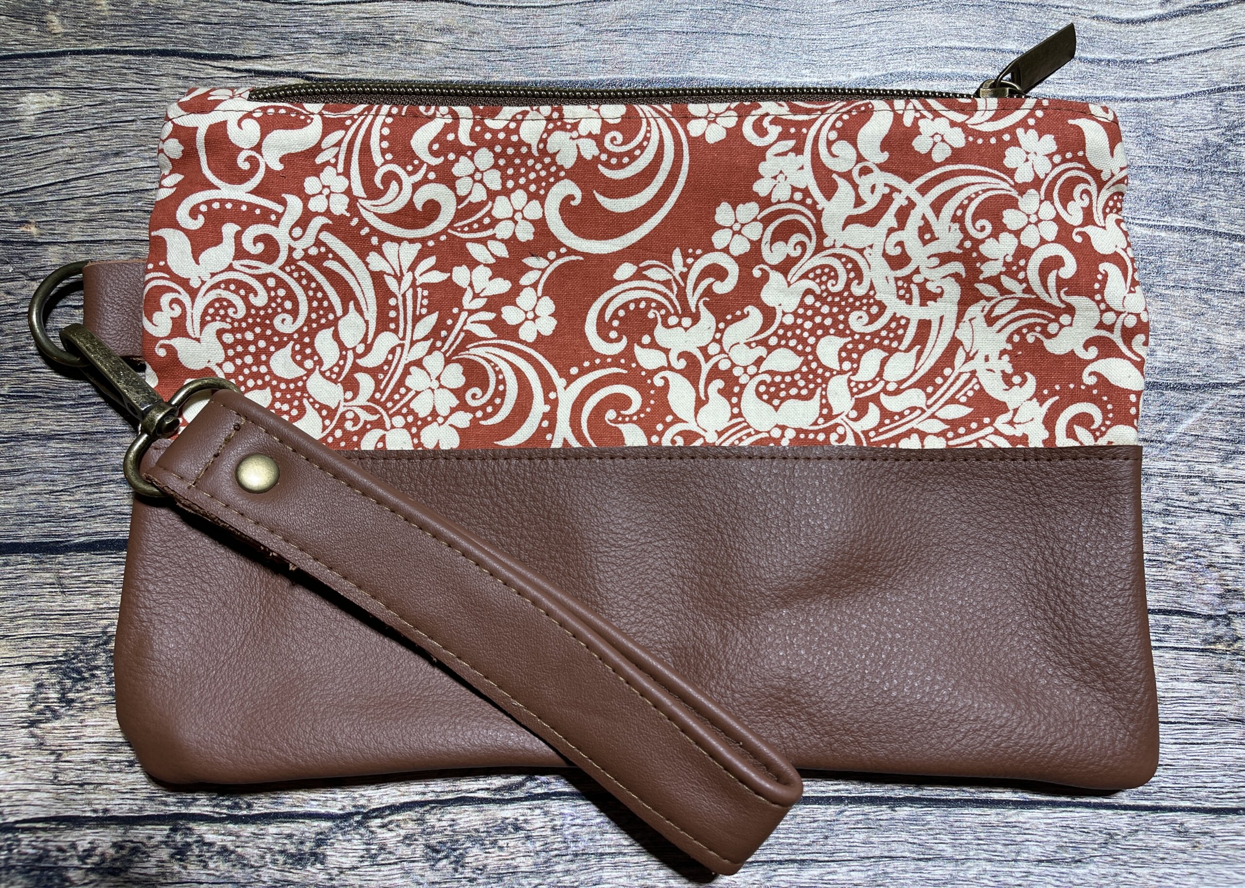 Wristlet – Burnt Orange Paisley with Upcylced Leather