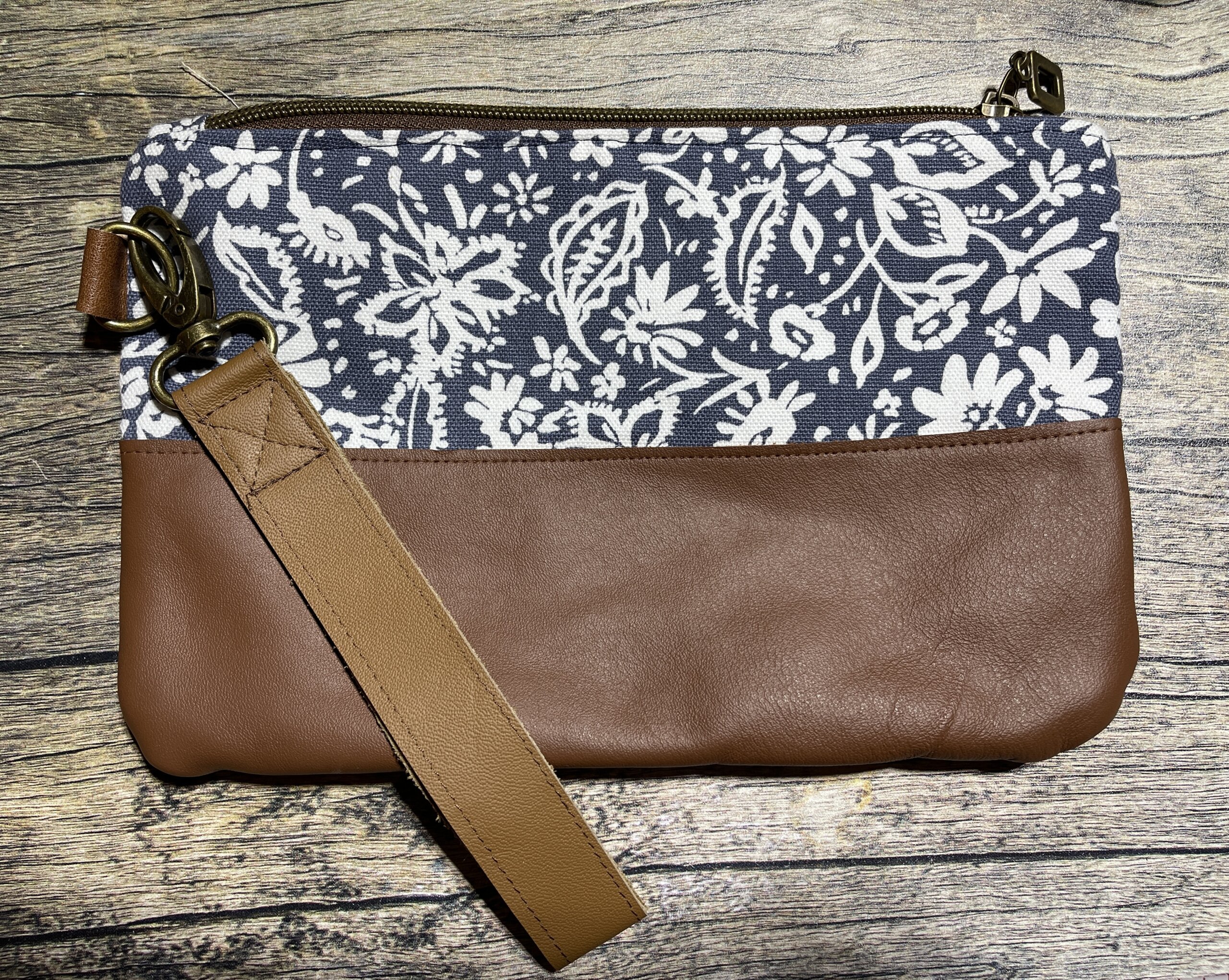 Wristlet – Denim Paisley with Upcycled Leather