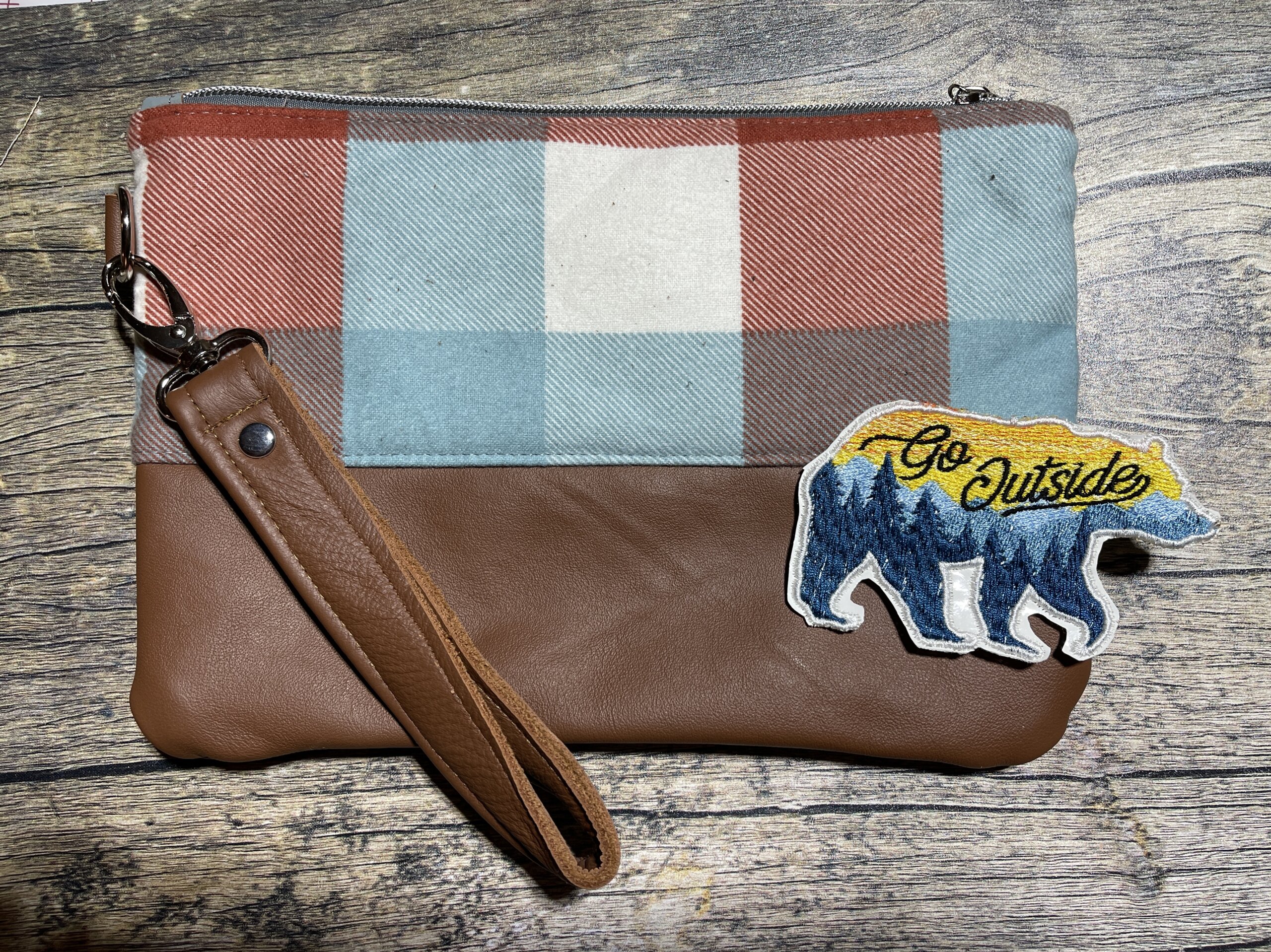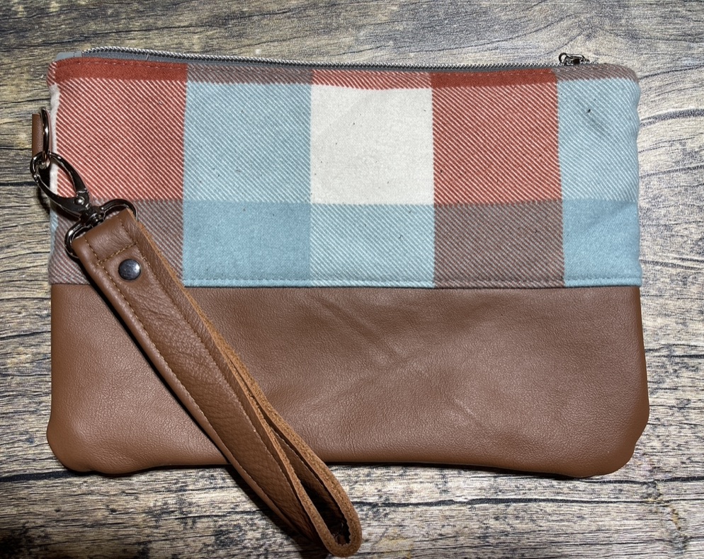 Wristlet – Retro Checked Flannel with Upcycled Leather